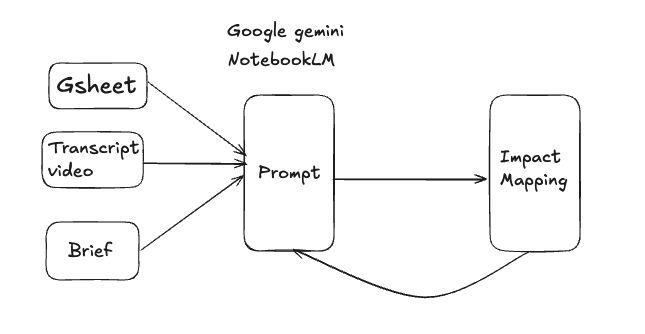 Une fois le contexte établi, il faut traduire votre objectif global en fonctionnalités concrètes. Pour ça, j'utilise l'Impact Mapping dans notebookLM.